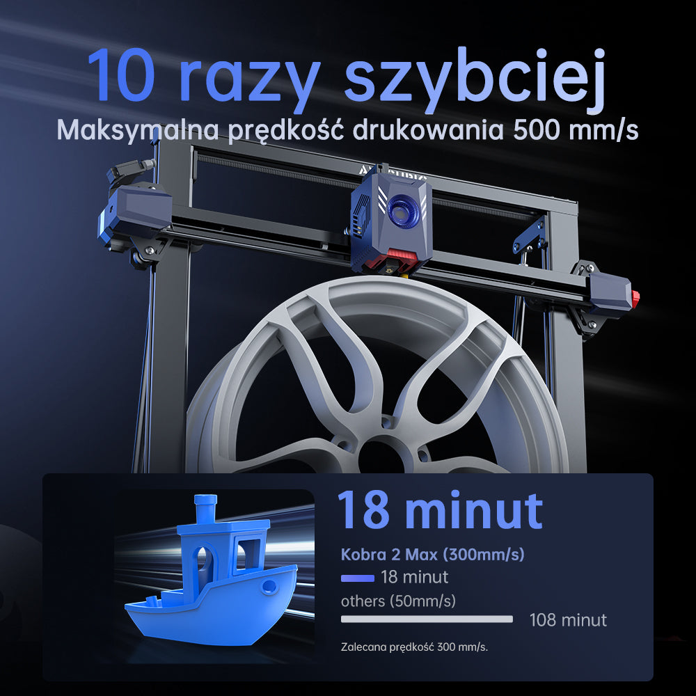 Wielkość wydruku 420*420*500 mm, umożliwia drukowanie modeli o objętości około 88 litrów za jednym razem.