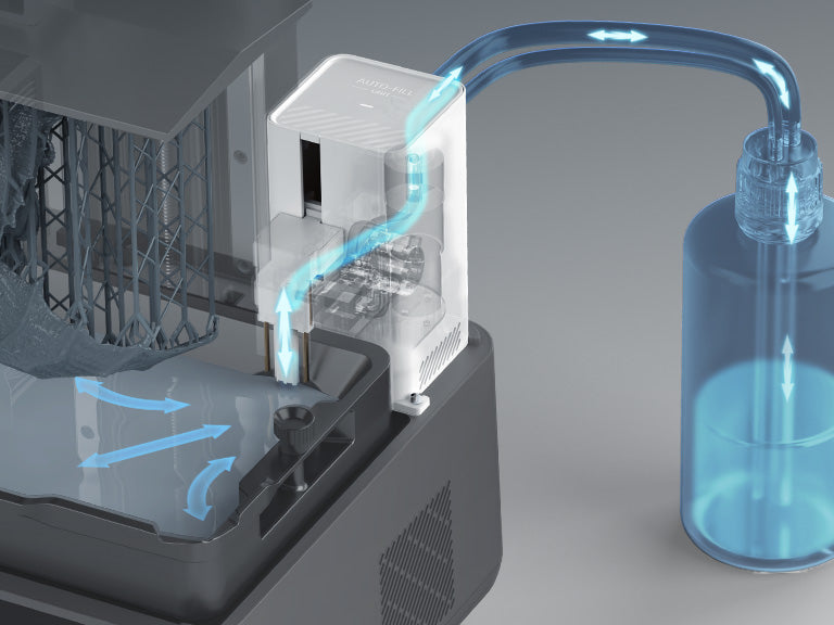 Kontrola poziomu żywicy gwarantuje optymalną ilość żywicy do drukowania.