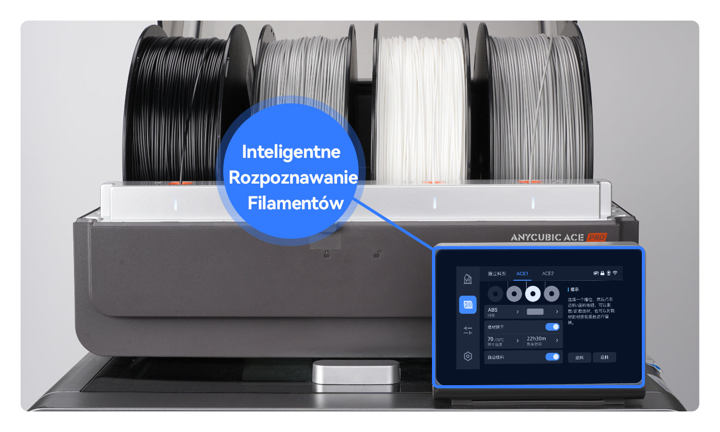 *Funkcja inteligentnej identyfikacji wymaga połączenia z internetem oraz filamentów kompatybilnych z inteligentną identyfikacją marki Anycubic.