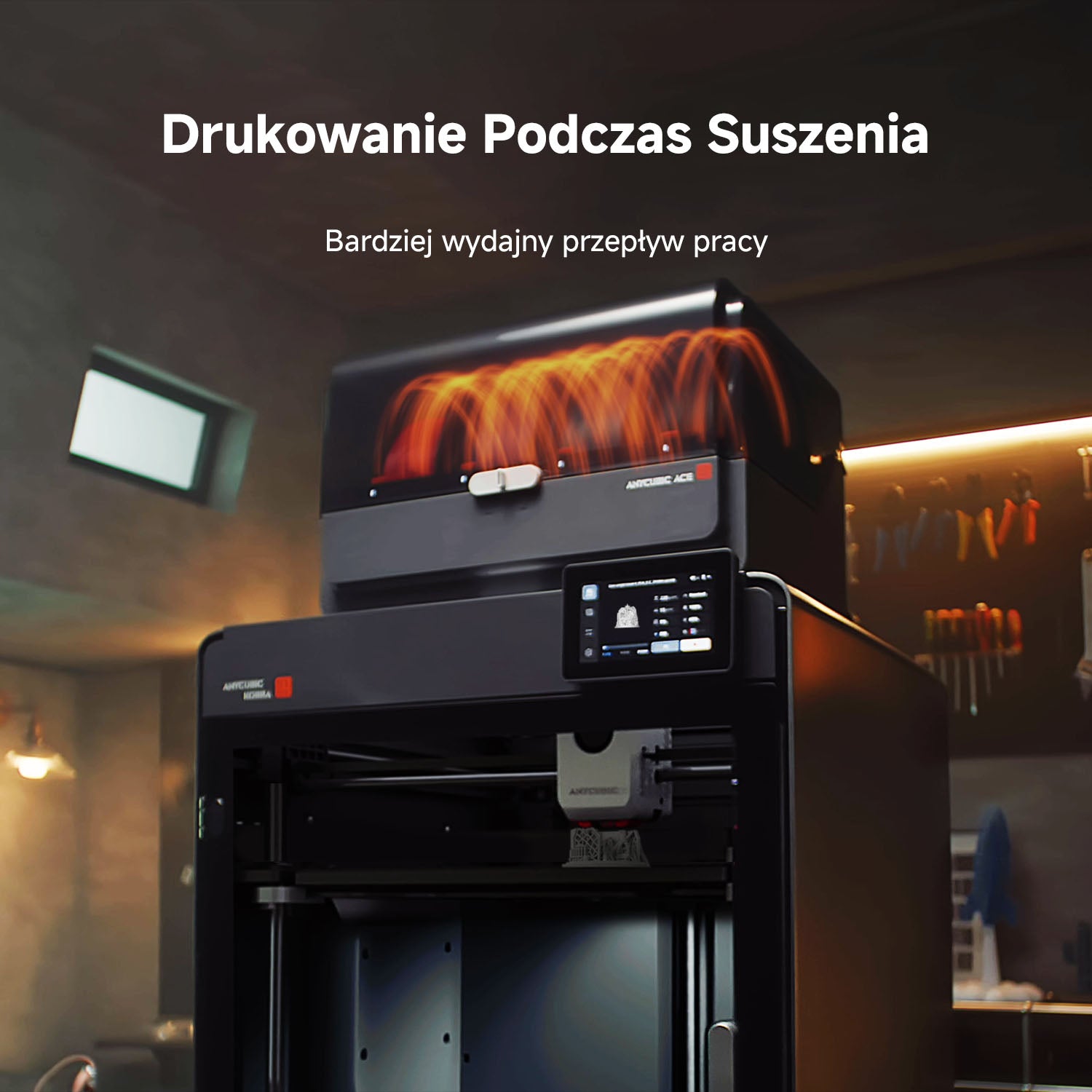 Chcesz drukować idealne modele? Suszenie filamentu jest kluczowe. Drukarka ACE 2 Pro umożliwia jednoczesne suszenie i drukowanie, dzięki czemu filamenty zachowują świeżość jak w dniu zakupu.
