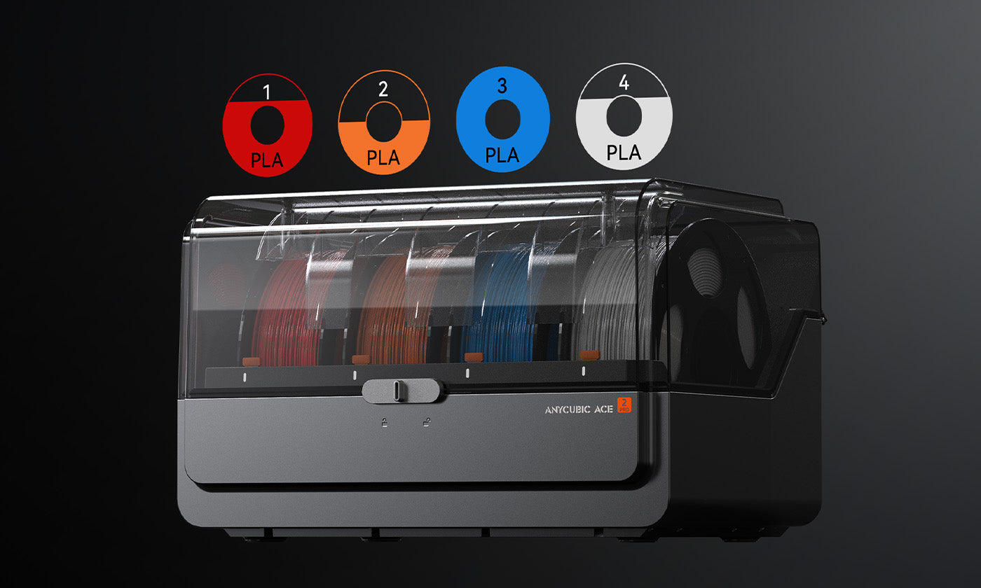 Zacznij od drukarki ACE 2 Pro do druku czterokolorowego. Następnie poszerz swoją paletę kolorów, łącząc cztery takie drukarki, aby uzyskać druk 16-kolorowy. Teraz, jeśli chodzi o kreatywność, jedynym ograniczeniem jest wyobraźnia!