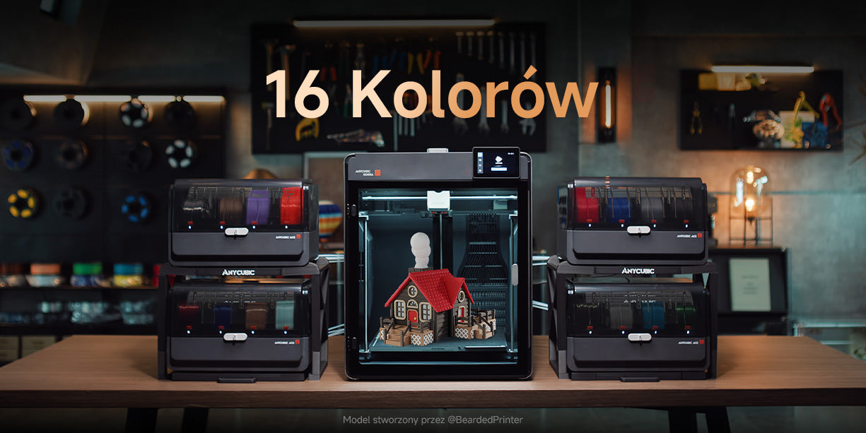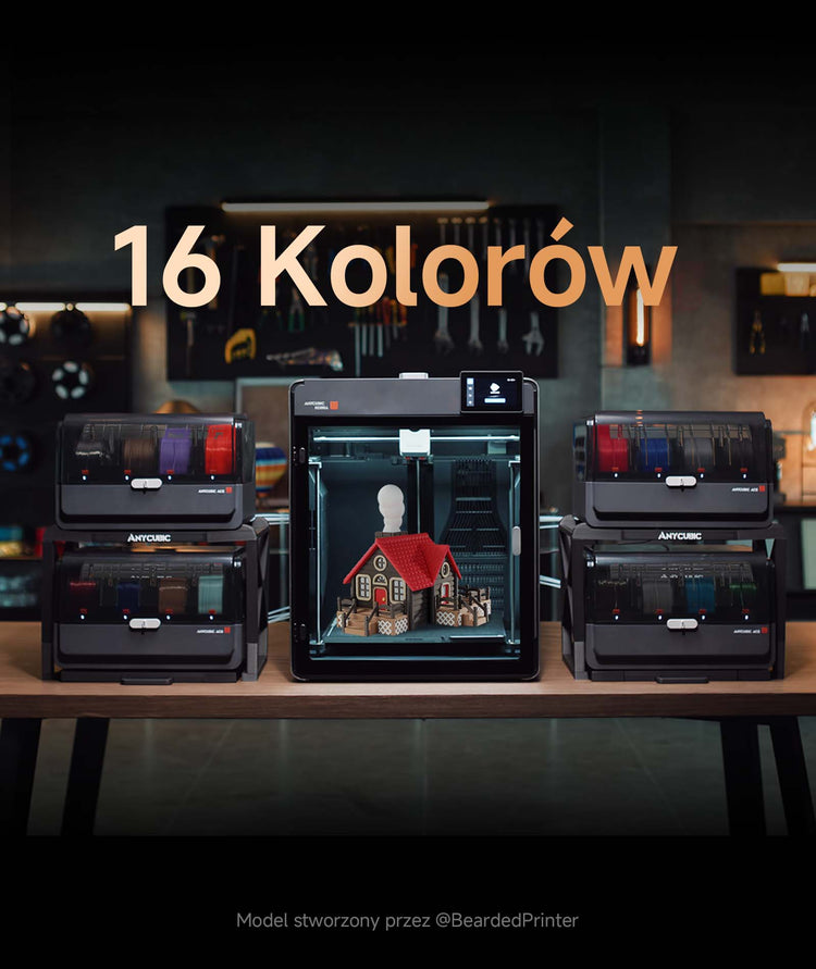 *ACE 2 Pro jest kompatybilny z całą serią drukarek wielokolorowych firmy Anycubic. Liczba obsługiwanych kolorów może się różnić w zależności od konkretnego modelu drukarki – szczegółowe informacje znajdują się w instrukcji obsługi drukarki.