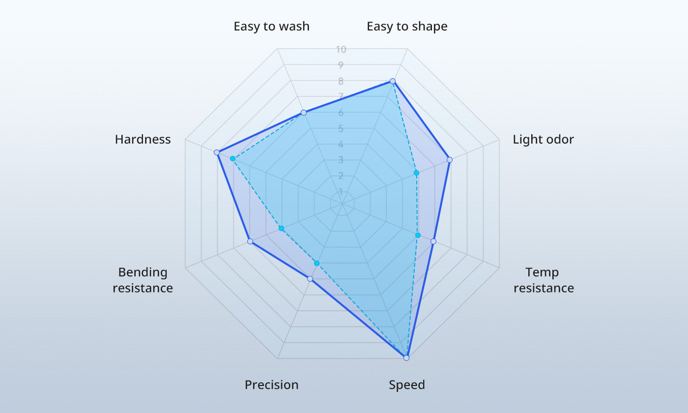 W porównaniu z żywicą High Speed, żywica High Speed 2.0 ma mniej zapachu, zapewniając zdrowsze doświadczenie podczas drukowania.