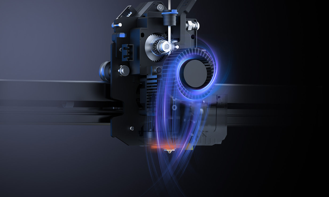 Dzięki zastosowaniu bezpośredniego ekstrudera oraz podwójnego silnika z podwójną osią Z, które zostały perfekcyjnie zoptymalizowane pod kątem systemów ekstruzji i chłodzenia, materiały są dostarczane wydajnie i precyzyjnie, co umożliwia szybkie topienie i chłodzenie. Skutkuje to płynną pracą i mniejszą widocznością linii warstw.