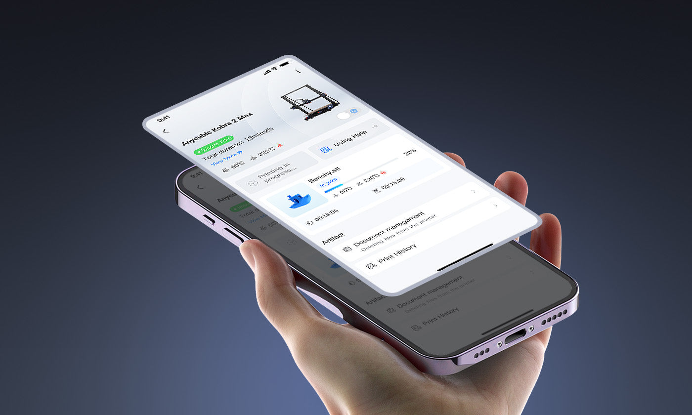 Aktualizacja firmware do wersji 3.0.5+ umożliwia korzystanie z aplikacji Anycubic z biblioteką modeli online, nadzorem wideo w czasie rzeczywistym, slicowaniem, nagrywaniem timelapse i zdalnym sterowaniem.