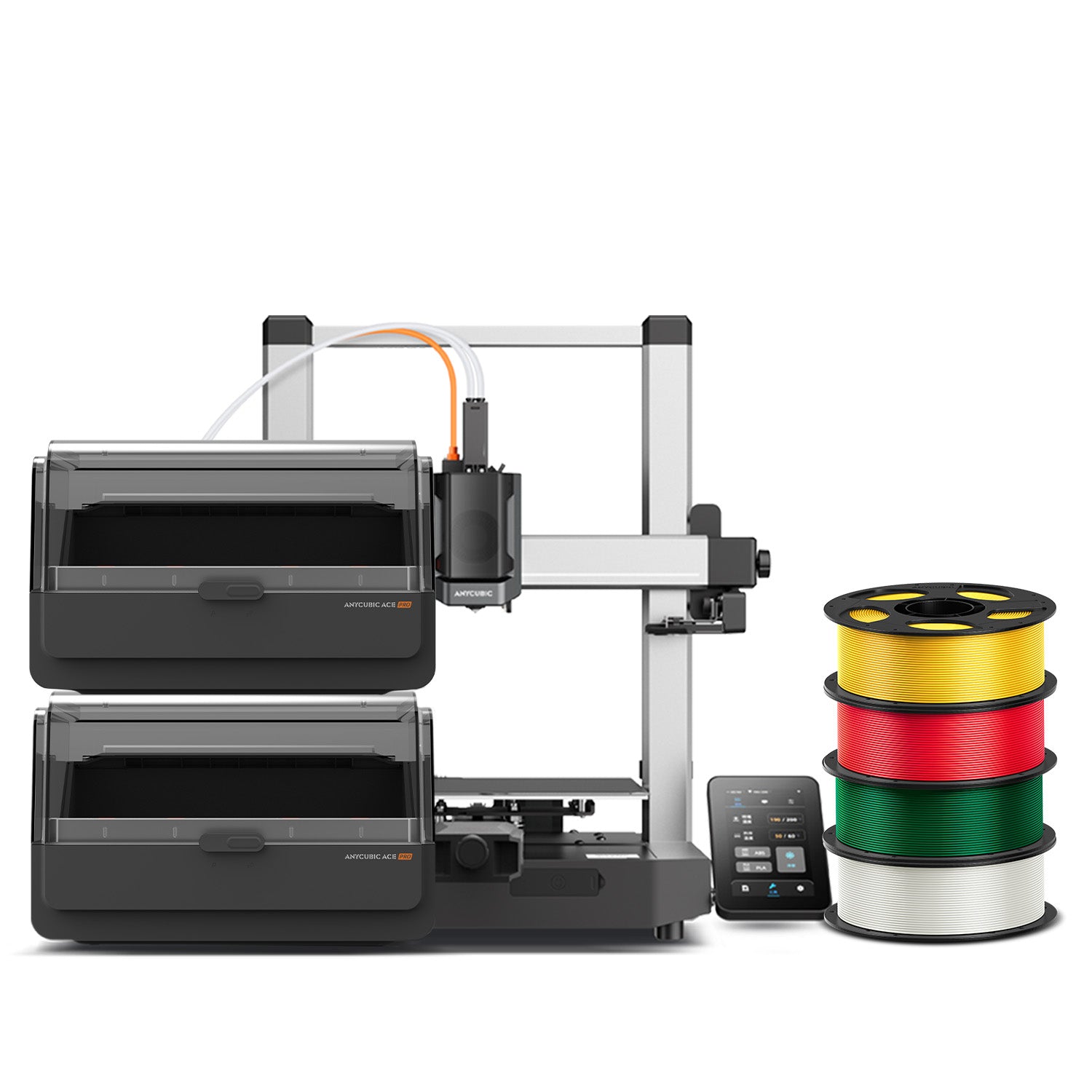 Zestaw 8-kolorowy zawiera: Kobra 3 V2 Printer*1; ACE Pro*2; moduł łączeniowy 8-kolorowy*1.