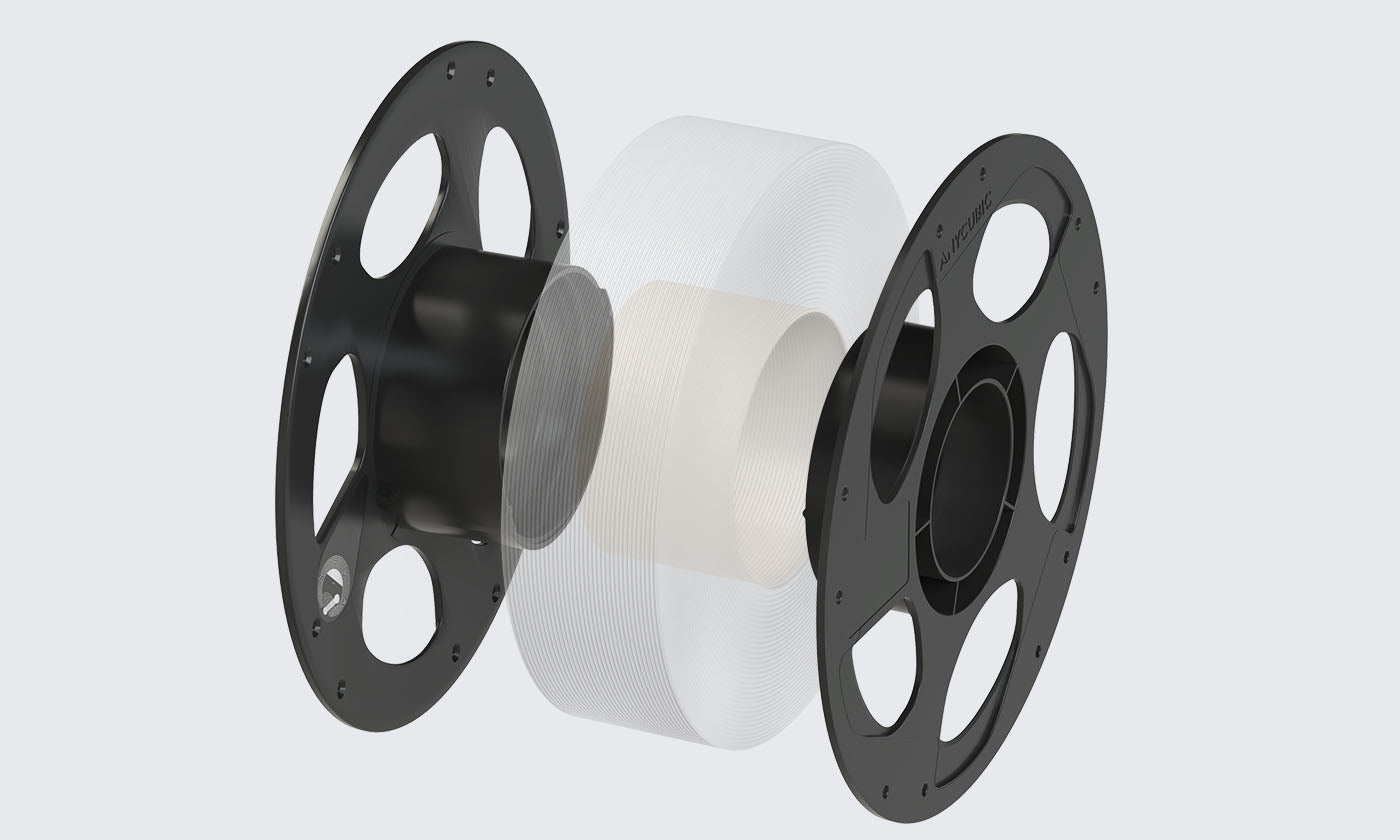 Wielorazowa szpula z filamentem wyposażona jest w gwintowany system połączeń, zaprojektowany z myślą o zwiększonej stabilności w połączeniu z filamentami bez szpuli. Taka konstrukcja znacznie zmniejsza ryzyko splątania, rozproszenia filamentu i błędów obsługi.