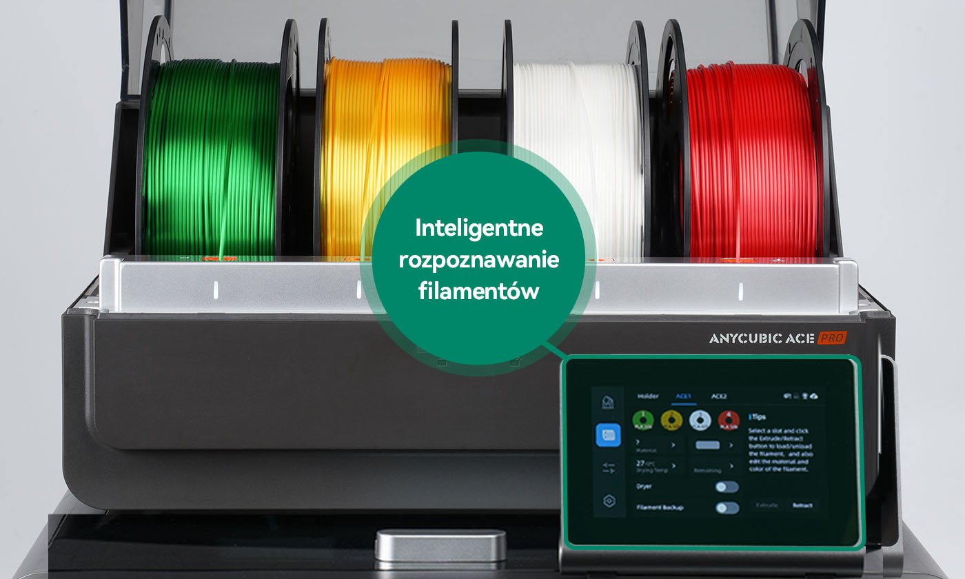 Włókna wyposażone są w inteligentne układy identyfikacyjne, które bezproblemowo integrują się z systemem ACE Pro, umożliwiając automatyczną identyfikację informacji o drukowaniu i zwiększając komfort drukowania.