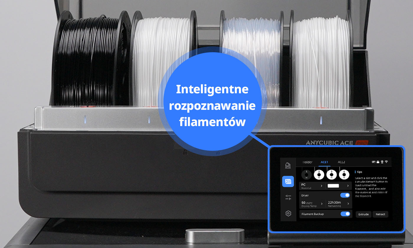 Włókna wyposażone są w inteligentne układy identyfikacyjne, które bezproblemowo integrują się z systemem ACE Pro, umożliwiając automatyczną identyfikację informacji o drukowaniu i zwiększając komfort drukowania.
