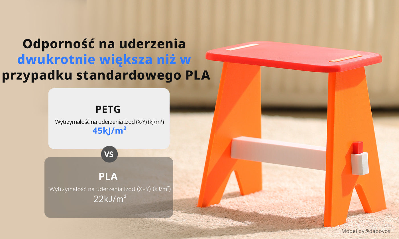 PETG łączy łatwość drukowania charakterystyczną dla PLA z wytrzymałością ABS. Jego odporność na uderzenia jest dwukrotnie większa niż w przypadku standardowego PLA. Modele zachowują integralność strukturalną nawet po upadku lub pod wpływem naprężeń. To sprawia, że jest to doskonały wybór do produkcji zabawek, obudów i prototypów mechanicznych.