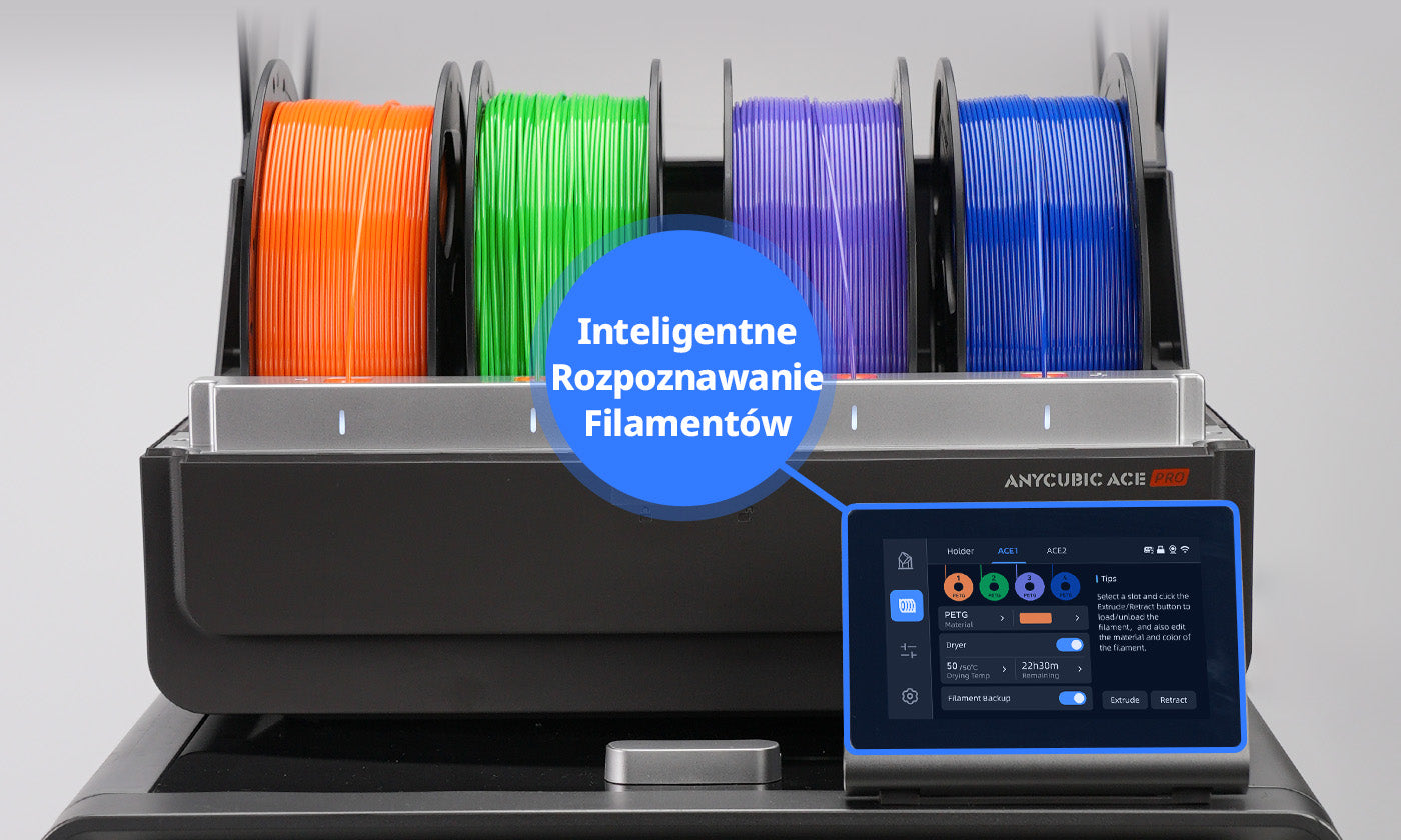 Włókna te wyposażone są w inteligentne chipy identyfikacyjne, które bezproblemowo współpracują z drukarką ACE Pro, umożliwiając automatyczną identyfikację parametrów druku i poprawiając komfort użytkowania.