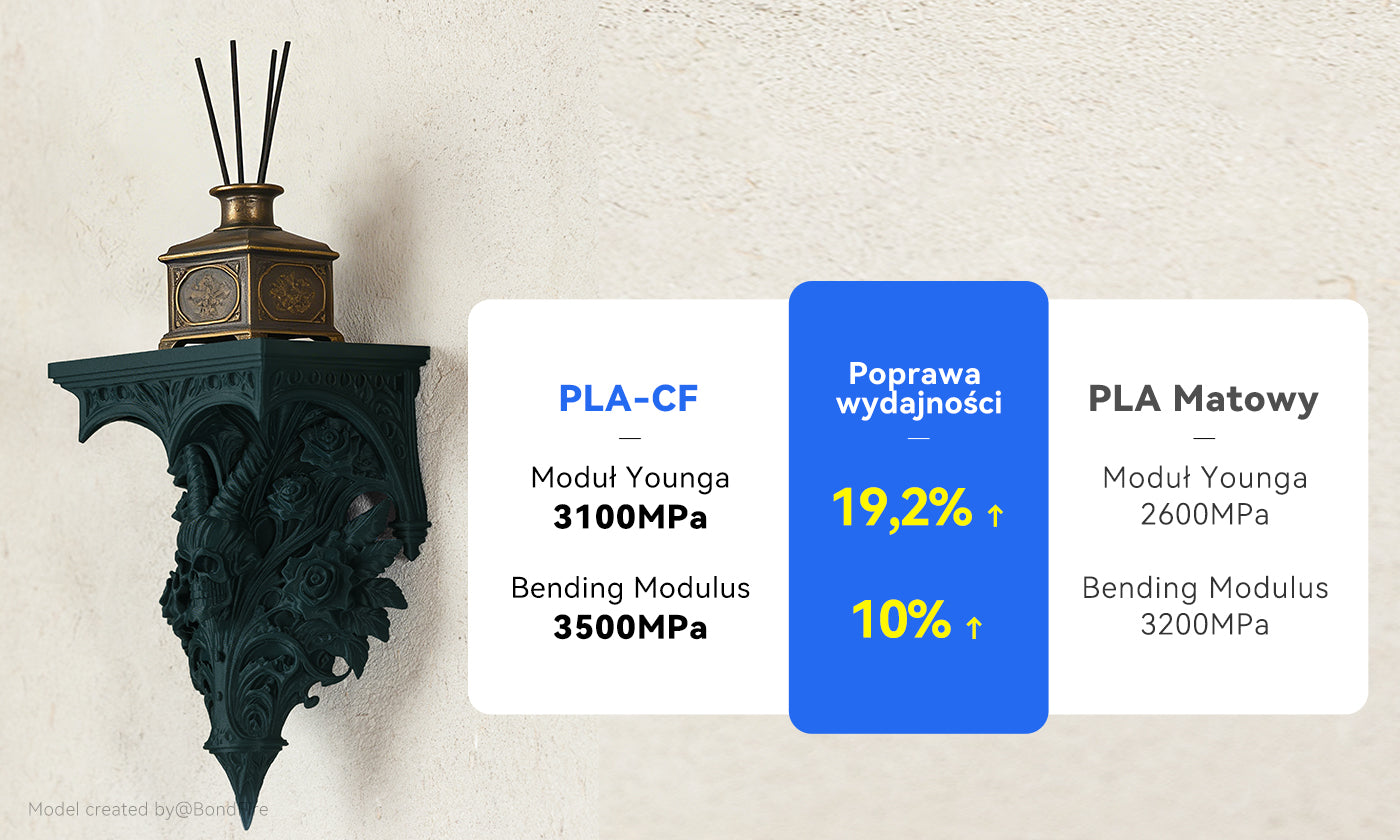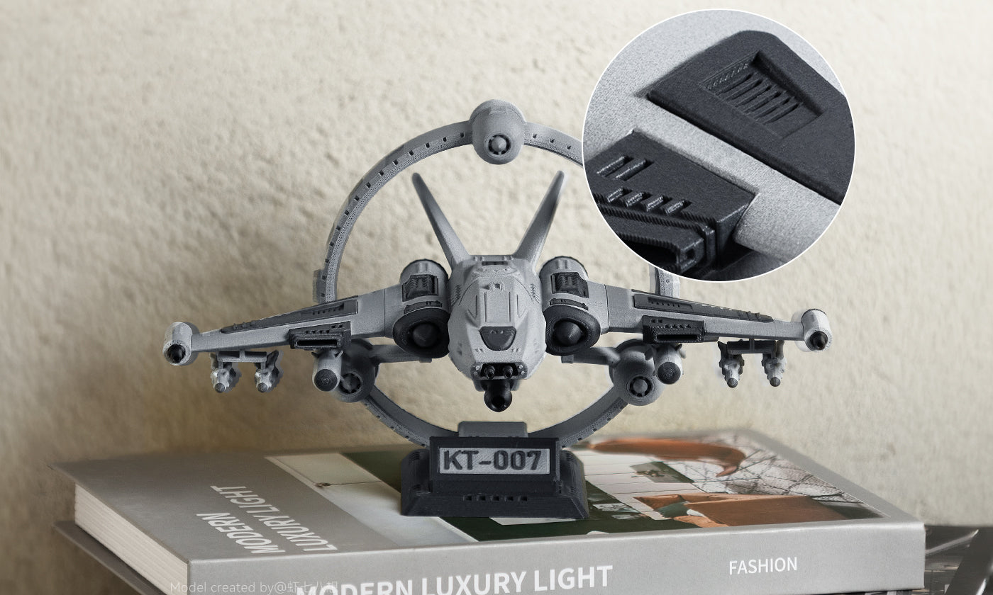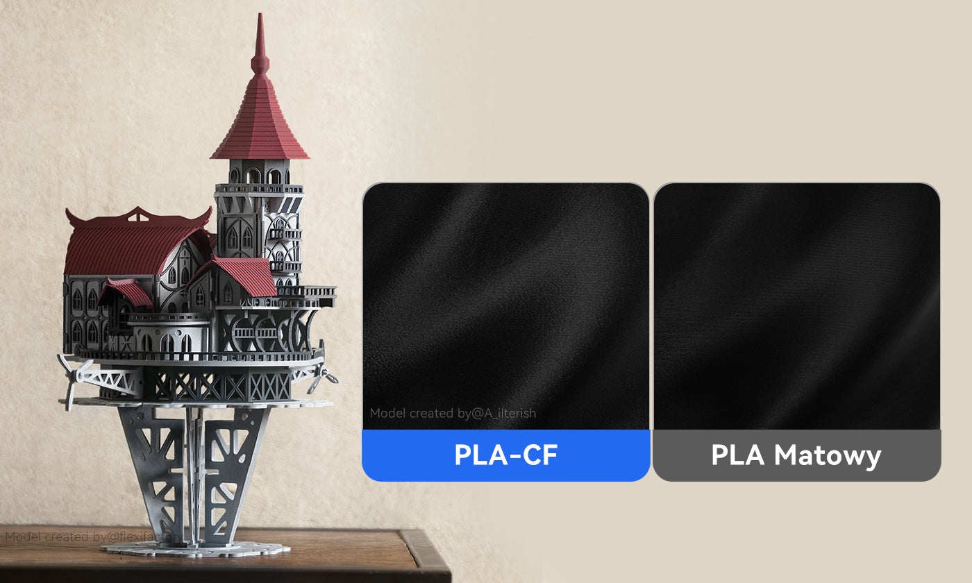 Anycubic PLA-CF wyróżnia się unikalną, matową fakturą, zapewniając wygląd klasy premium bez konieczności dodatkowego piaskowania czy polerowania – co czyni go idealnym wyborem do drukowania elementów ekspozycyjnych, takich jak figurki oraz prototypy architektoniczne i mechaniczne.