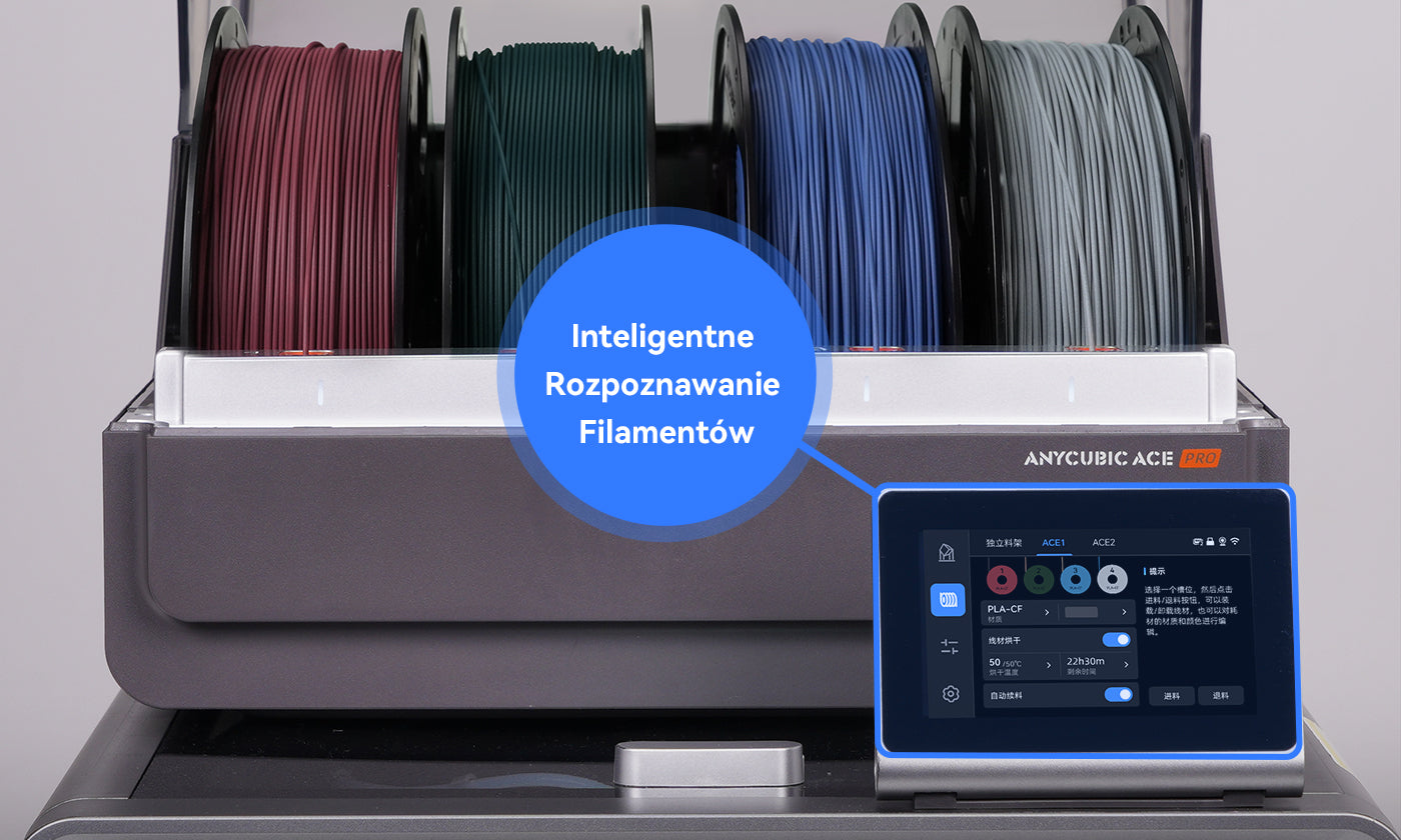 *Funkcja inteligentnej identyfikacji wymaga połączenia z Internetem oraz użycia filamentów marki Anycubic kompatybilnych z systemem inteligentnej identyfikacji.