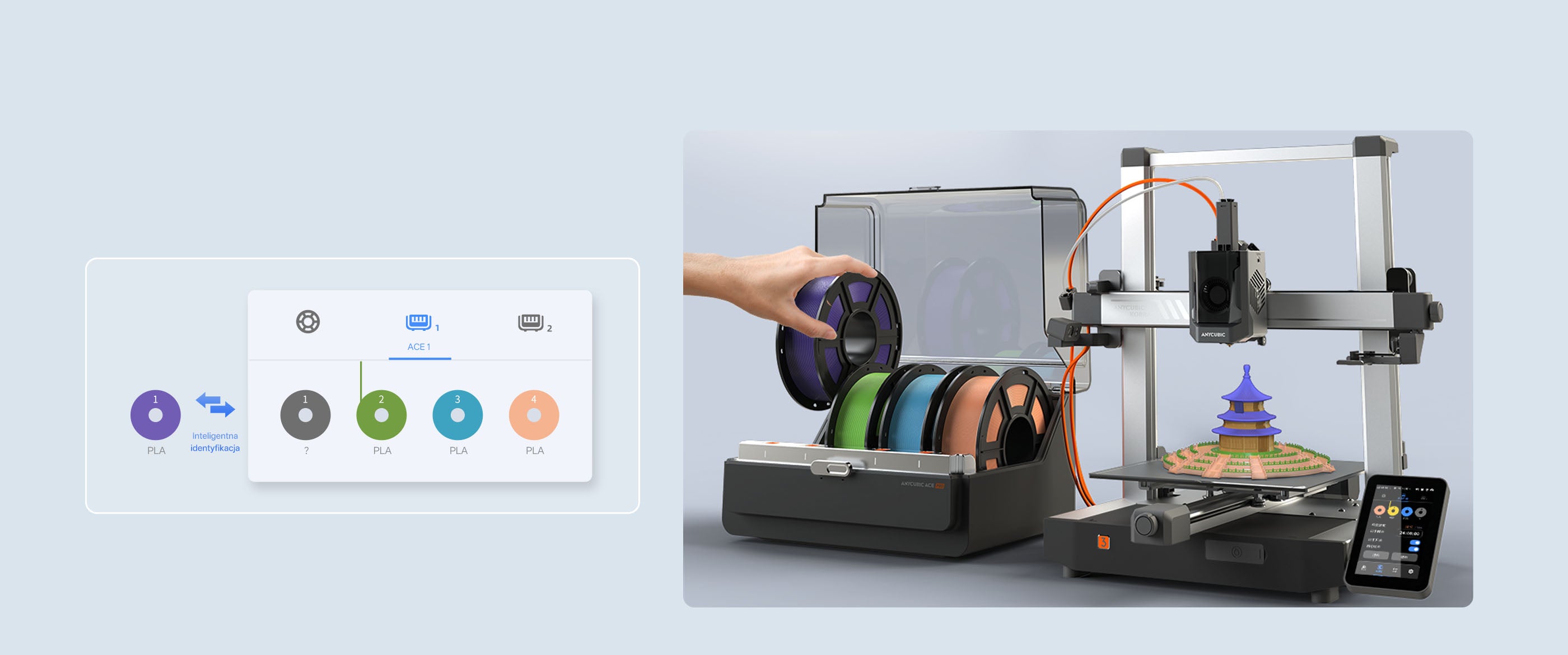 ✅ Inteligentne rozpoznawanie – Automatyczne ładowanie optymalnych ustawień podczas użycia z drukarkami Anycubic ACE Pro.