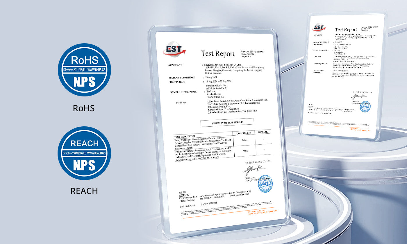 Żywica Anycubic Plant-Based UV Resin 2.0 jest produkowana głównie z soi, co zapewnia drukowanie o niskim poziomie zapachu. Posiada certyfikaty zgodności z normami RoHS i REACH, co gwarantuje większe bezpieczeństwo i spokój ducha podczas użytkowania.